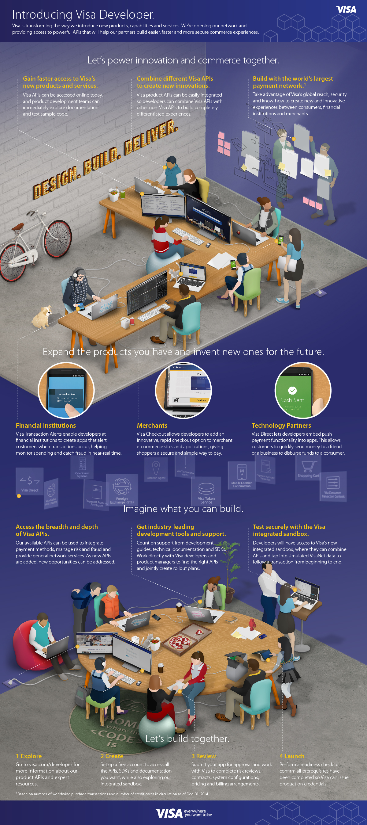 Il Visa Developer sta trasformando il modo in cui ci colleghiamo ai partner, rendendo molte delle nostre reti e tecnologie disponibili tramite API . Dalla geolocalizzazione alle notifiche in tempo reale fino alla tokenizzazione, la piattaforma Visa Developer vi offre accesso diretto a un numero crescente di API, strumenti e supporto che possono aiutarvi a far crescere la vostra attività in modo più semplice, veloce e sicuro. Scoprite come potete sfruttare queste risorse fornite da una delle reti di pagamenti più grande al mondo.